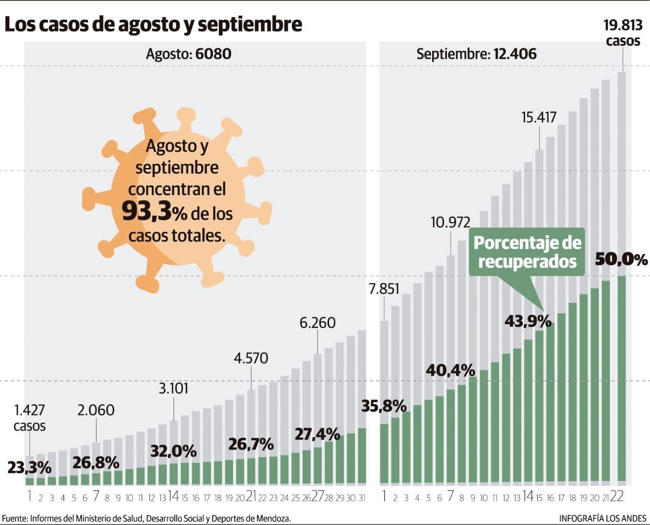 Se trata de alrededor del 1% de la población de Mendoza, estimada según el Indec para julio de 2020 en poco menos de 2 millones de personas. Pero además con los datos de hoy, se desprende que la mitad de los pacientes desde el inicio ya logró recuperarse.