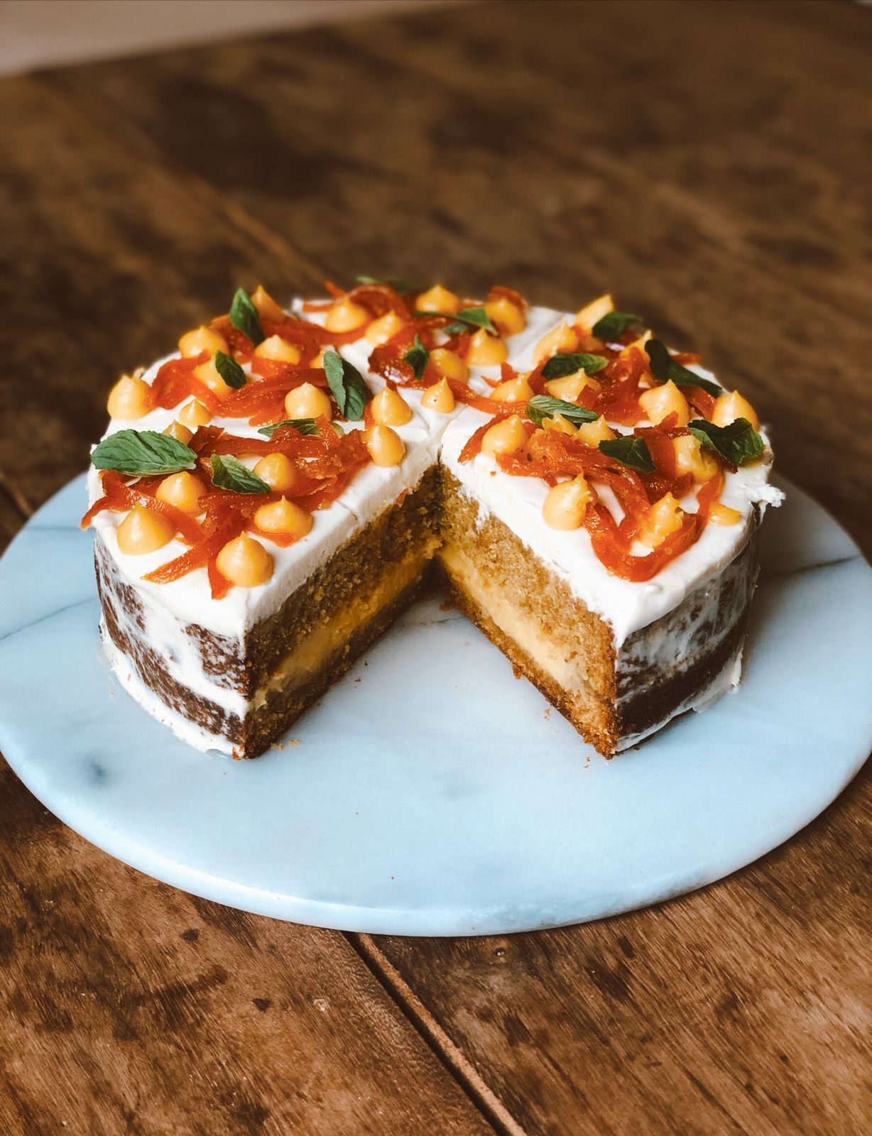 “Esta torta me lleva a sabores de mi infancia. Torta de mandarina, curd de mandarina y frosting de queso por arriba. Acá les dejo la receta como la hice yo, espero la archiven y la hagan porque la van a disfrutar mucho”, anticipa Martín.