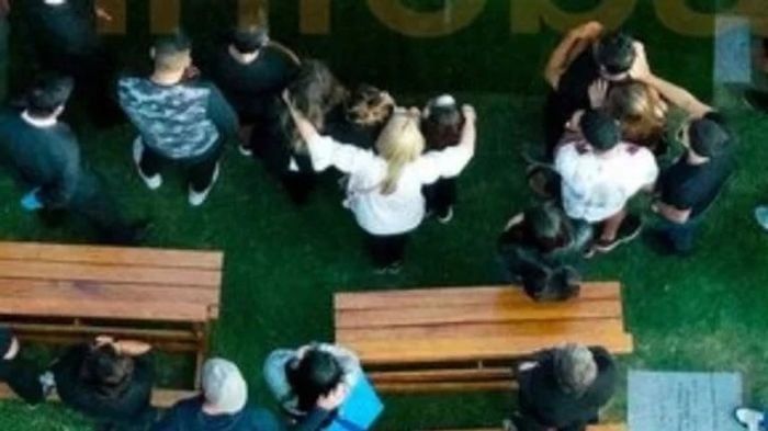La foto, registrada por el drone de Infobae, tomó desde arriba a Claudia Villafañe fundida en un abrazo con Jana y sus hijas Dalma y Gianinna. Nuevamente, la ex mujer del Diego, quien se encontraba divorciada de él hacía más de 17 años, volvió a ponerse la cinta de capitana y consoló a las jóvenes.