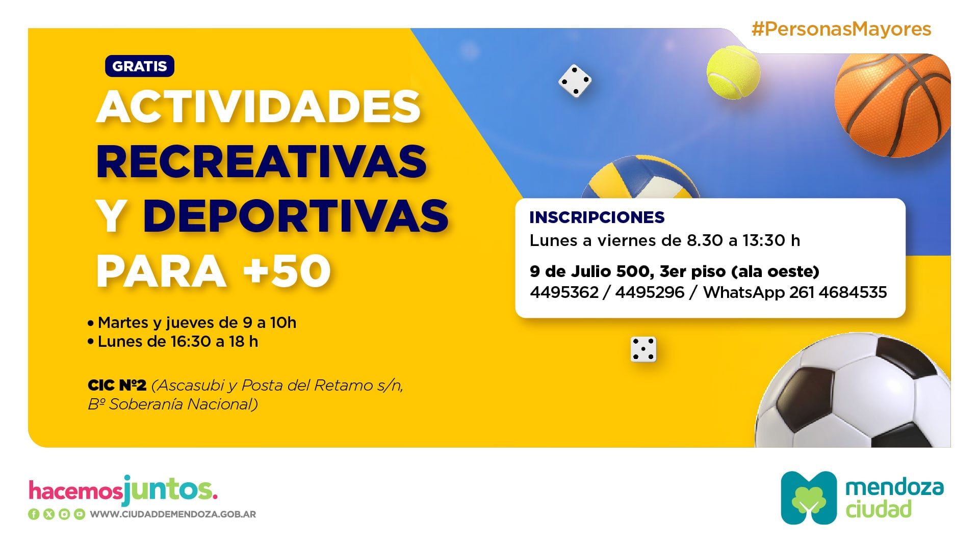 Si tenés más de 50 años y querés hacer otra cosa diferente a tu rutina habitual. Te invitamos a disfrutar de momentos de recreación y socialización a través de la actividad física, especialmente lúdica y creativa.