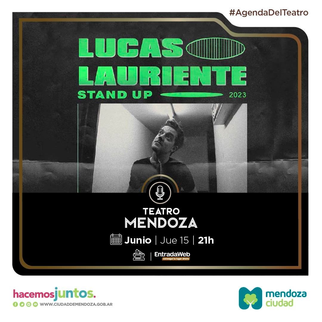 Horario: 21 h. Ticketera: Entrada Web. Entrada General: $3500. Sinopsis: Lauriente, quien forma parte del mundo de la comedia desde sus 19 años, supo ganarse su lugar como uno de los grandes del stand up argentino, conquistando a jóvenes y despertando la curiosidad en adultos. En un clima de intimidad y calidez, Lucas desarrollará sus más recientes rutinas. El público será partícipe de una jornada de stand up visceral, intensa e introspectiva. También, a mitad del show, habrá un pequeño lugar para la música.