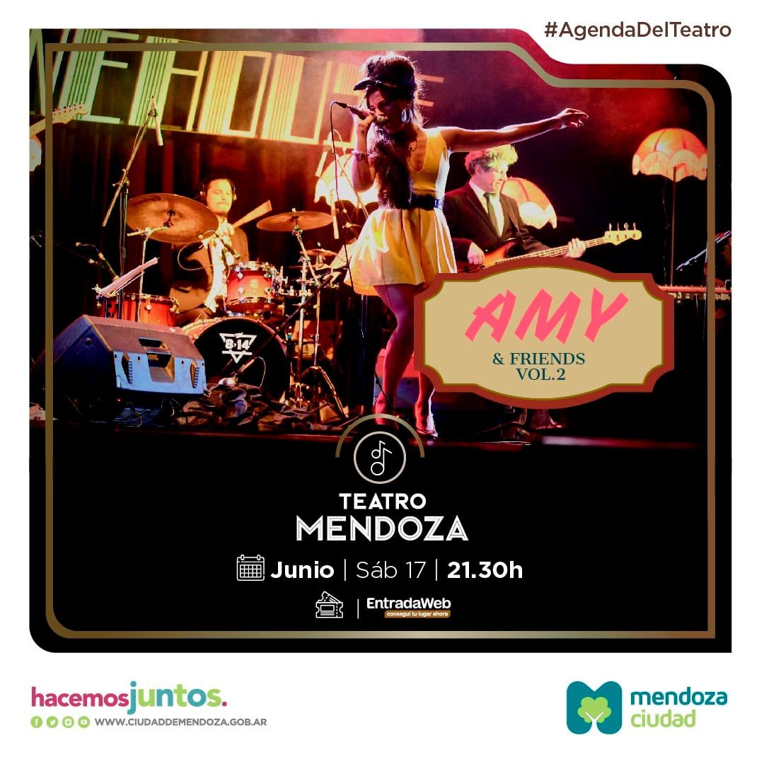Y el sábado 17, a las 21.30, llegará el momento de una exquisitez musical: Amy and Friends Vol. 2. La cantante mendocina, Alina Rodríguez encarnará a la “reina del soul” junto a su banda Amy Rod para rendir tributo a Amy Winehouse en un espectáculo único.