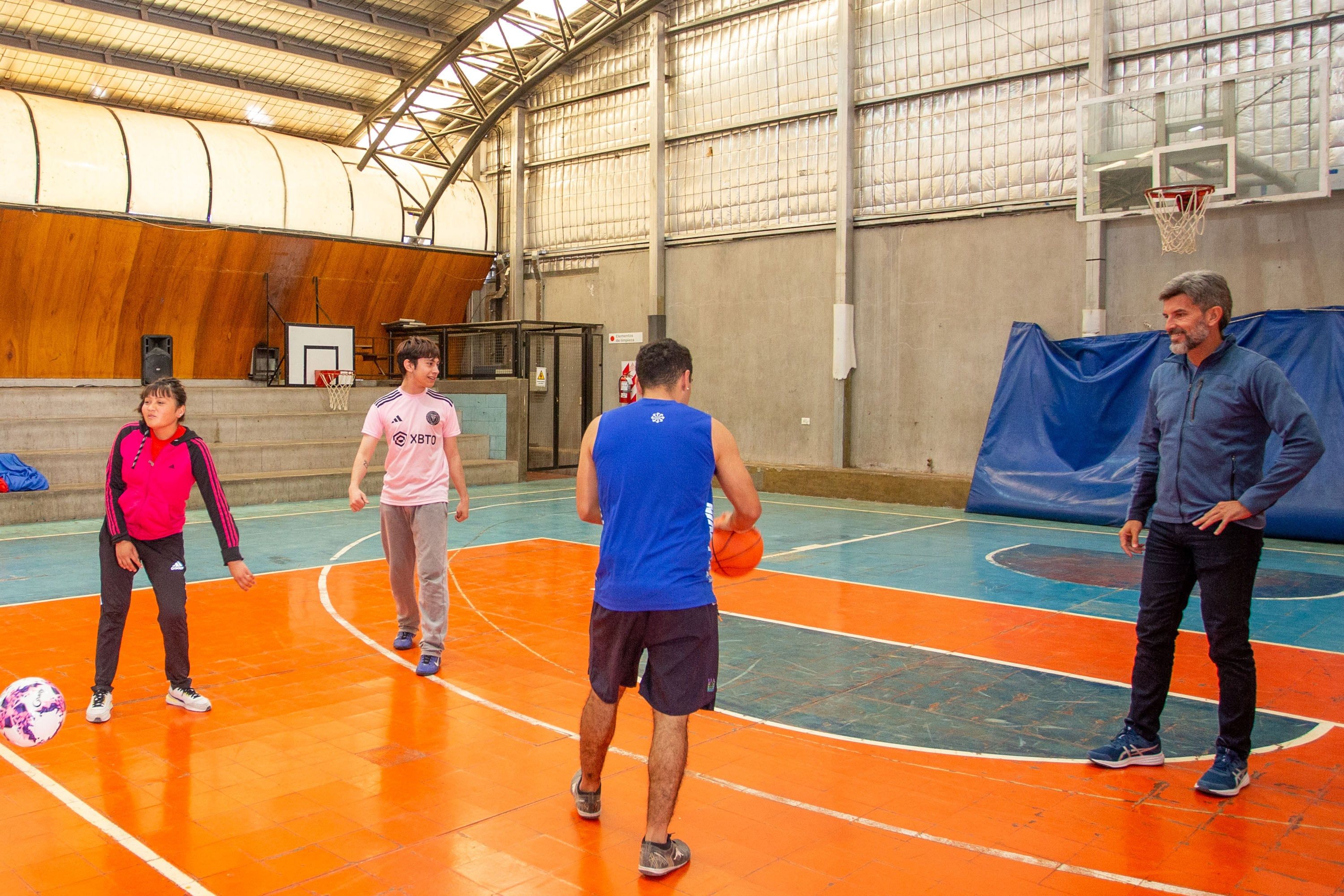 Uno de los desafíos a los que se sumó el intendente fue al de básquet, en el cual los alumnos probaron las nuevas pelotas con tiros dobles y triples. También, se acercó a alentar en el partido de fútbol que se jugó en la cancha del gimnasio.