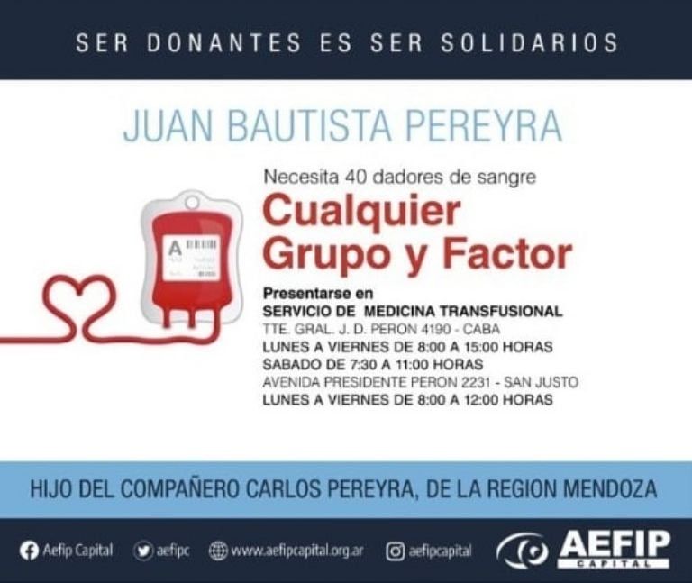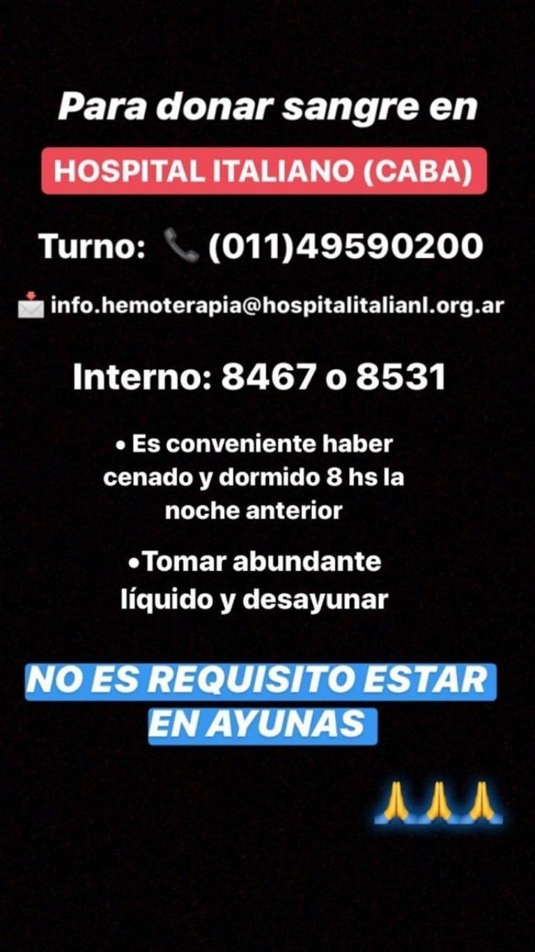 El nene estudia en el colegio Misericordia, por lo que sus amigos y familiares organizaron una campaña en las redes sociales para que residentes en la Ciudad de Buenos Aires puedan acercarse al hospital Italiano para donar sangre.