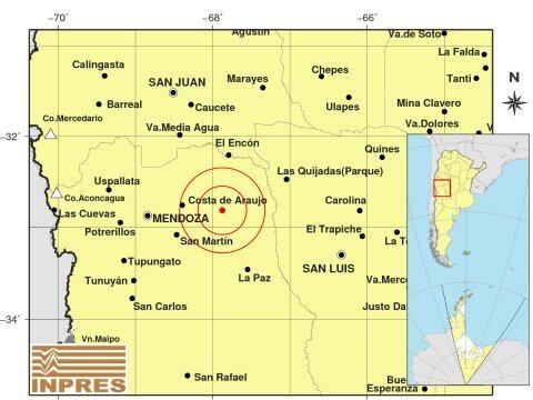 El pasado 20 de septiembre se registraron dos pequeños sismos. El primero de ellos se registró pasadas las 20 horas del domingo y el epicentro fue a 90 km al Este de Mendoza y a 49 km al Este de Costa De Araujo. El movimiento tuvo una magnitud de 2.5 grados en la escala de Richter y una profundidad de 14 kilómetros.
