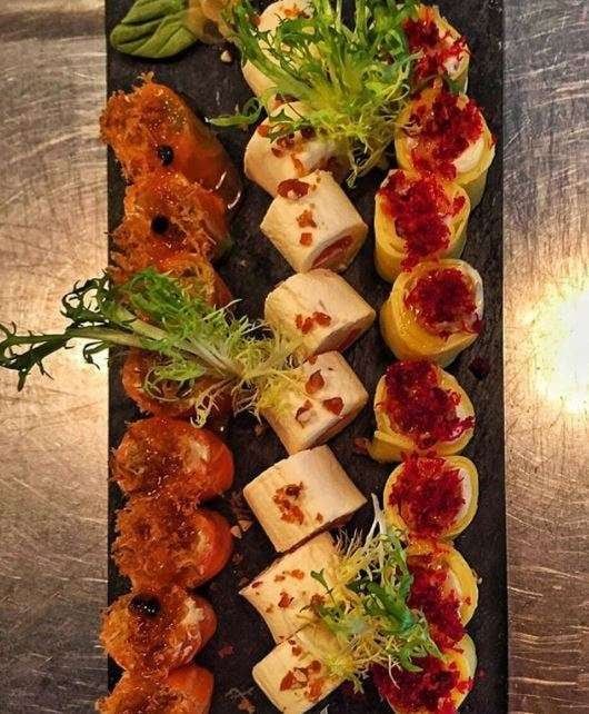 Desde ceviche peruano (de diversas variedades, como ceviche de pulpo, salmón, atún o camarón), hasta las más originales piezas de sushi; pasando por platos calientes como salmón teriyaki y un exquisito atún rojo.