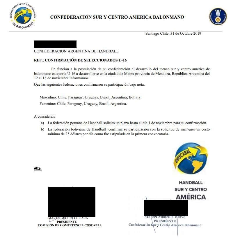 La delicada situación social que atraviesa Chile hizo imposible la realización de los Torneos Sur y Centro de Cadetes en la ciudad de Santiago de Chile. Y la Confederación Sur y Centro América de Balonmano (CoSCaBal) emitió una nota oficial en la que dio por confirmada a la ciudad de Maipú como anfitriona de los torneos femenino y masculino U16. Por lo que el estadio de la Municipalidad de Maipú recibirá a las delegaciones de Brasil, Chile, Paraguay, Uruguay, Bolivia y la Argentina.