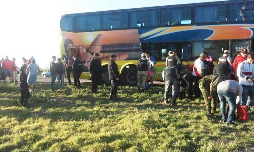 Una veintena de colectivos con integrantes de la barra brava de River pasaron por la ruta 188 en Bowen, General Alvear, y rumbo a la capital de la provincia donde hoy se jugará la final por la Supercopa.