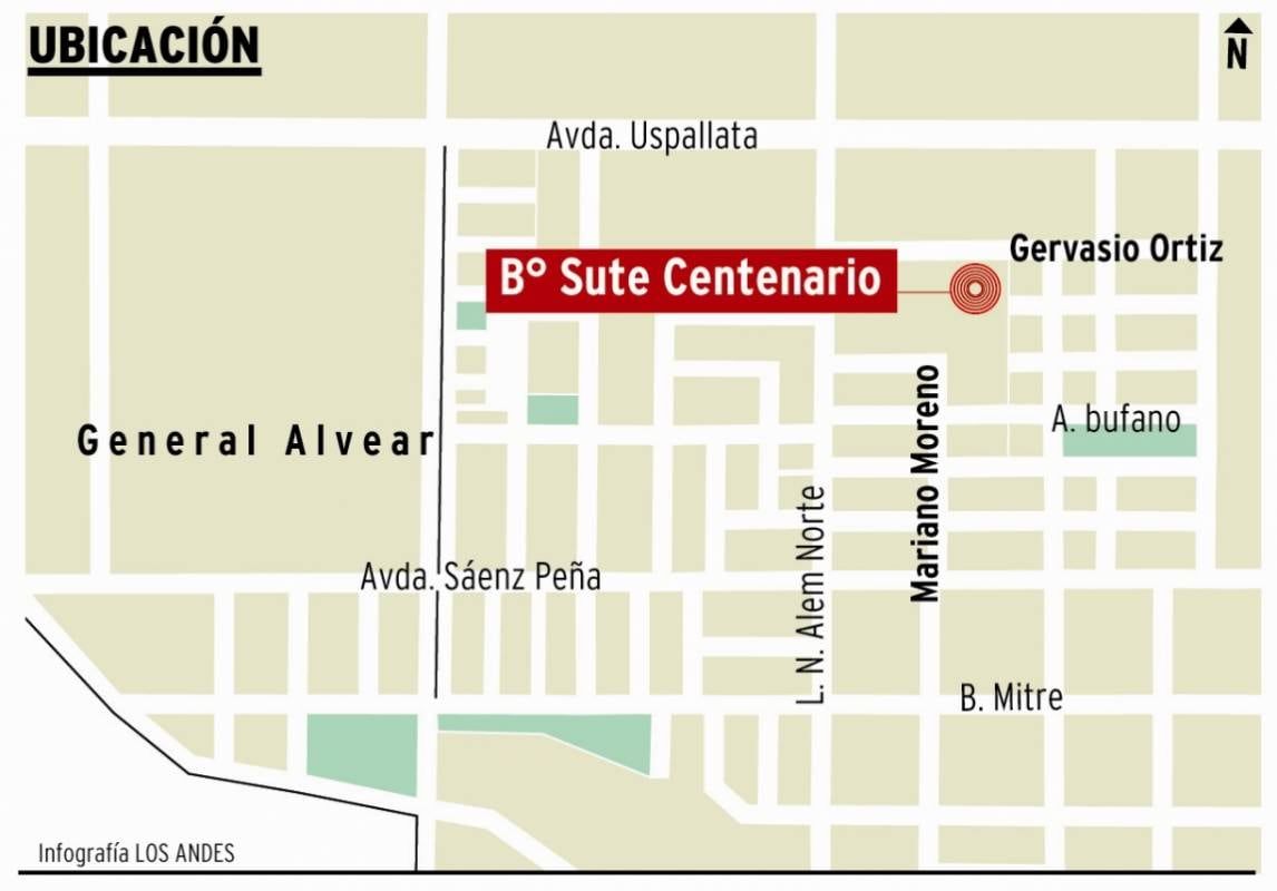 Ubicado entre Gervasio Ortiz y Mariano Moreno, al noroeste de la Ciudad de General Alvear, el barrio SUTE Centenario está ocupado íntegramente por trabajadores de la educación y consta de diez viviendas que son parte de otras 275 que el sindicato logró en las paritarias del 2009, a General Alvear le tocó un número de ocho viviendas por la cantidad de afiliados con los que cuenta, pero se redondeó a diez y finalmente tras dos licitaciones el barrio se puso en construcción.