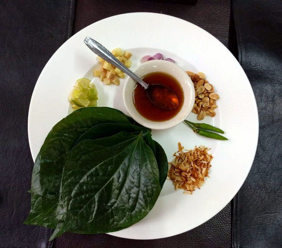 Se trata de un plato donde hay trocitos de limón, maní, échalote, jengibre, chile verde y coco seco, que se agrupan en una hoja de betel -previamente doblada como un cono- y que se rocían con un jarabe dulce antes de comerlos.