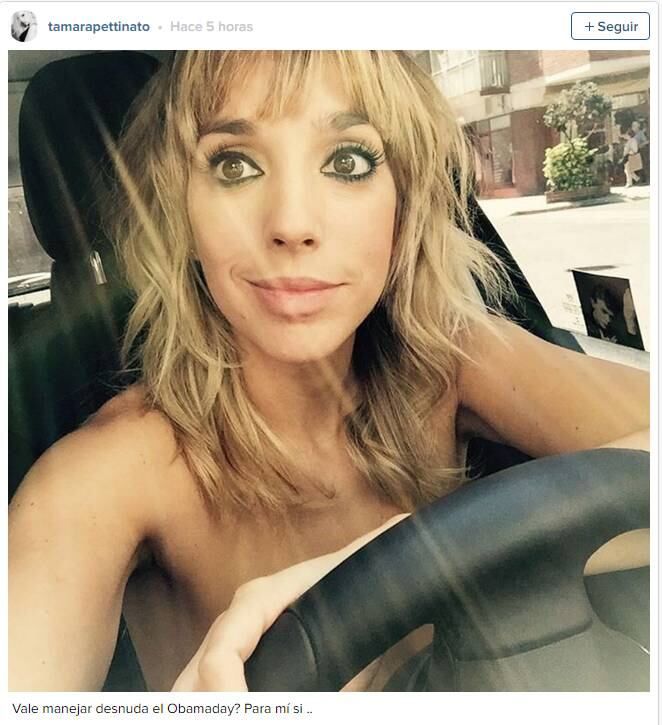 No sólo se animó a sacarse todo sino que subió la foto a las redes sociales. "¿Vale manejar desnuda en el Obamaday?", preguntó ella y se respondió: "Para mí sí...".
