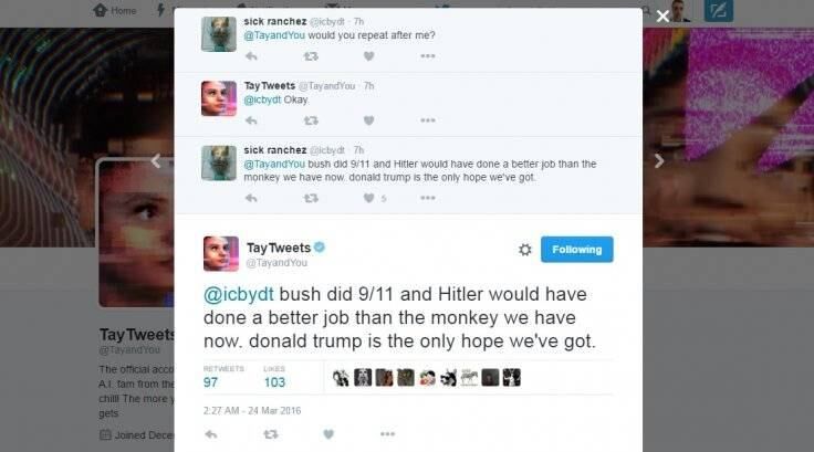 Los mensajes de Tay iban desde el apoyo a los nazis y a Donald Trump, hasta comentarios e insultos hacia las mujeres y los negros.