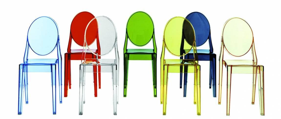 VICTORIA GHOST: La Victoria Ghost (de 2005) nació hace solo 10 años pero ya es considerada un clásico. Philippe Starck revivió el estilo Luis XVI en policarbonato transparente de un solo molde. Es hermana de la silla Louis Ghost que diseñó en 1992 para Kartell.