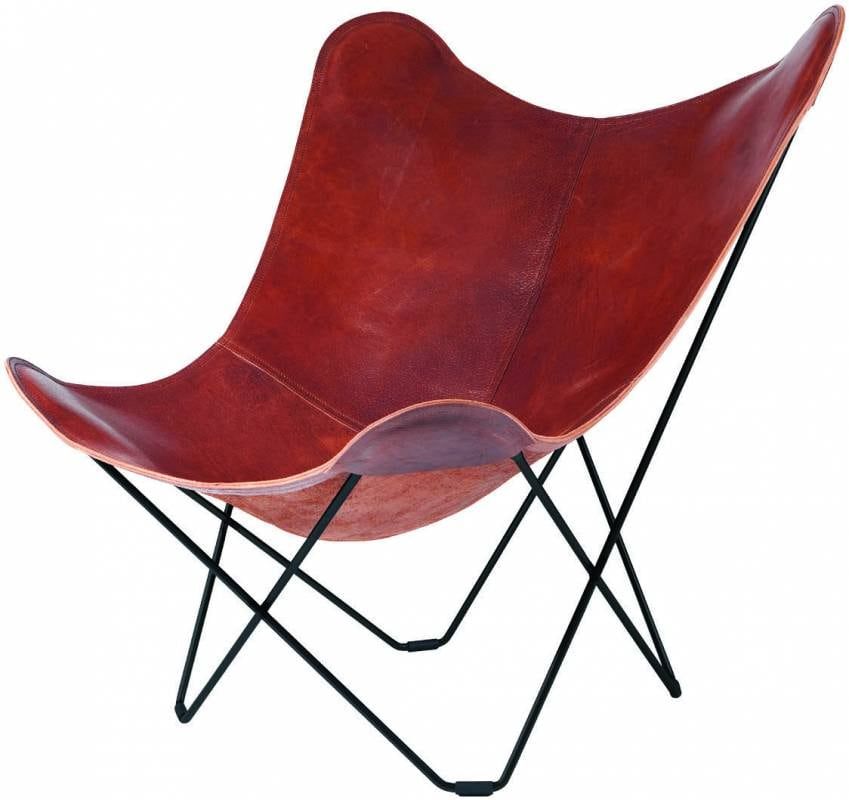 SILLÓN BUTTERFLY: Tres jóvenes arquitectos (uno catalán, Antonio Bonet Castellana y dos argentinos, Juan Kurchan y Jorge Ferrari Hardoy) en 1938 dieron a luz al Buterfly, un sillón consistente en una estructura de hierro con un cuero colgado. Esta pieza funciona en ambientes con una presencia contemporánea, aérea y liviana, no dependiendo de la caja arquitectónica y con su propia independencia, ya que no necesita parecerse a otra para formar un juego.