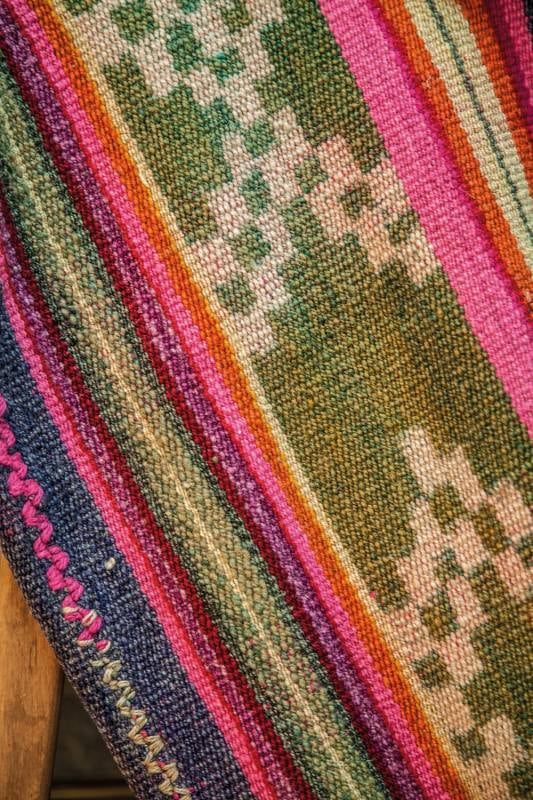 Los trabajos son desarrollados con distintas lanas, que predominan en cada caso de acuerdo a la región. Pueden ser de oveja, llama y alpaca. Hay mucho color en sus trabajos; algunos de ellos se logran mediante recursos propios de la naturaleza del lugar como las tinturas elaboradas con cenizas, flores y algunos frutos.