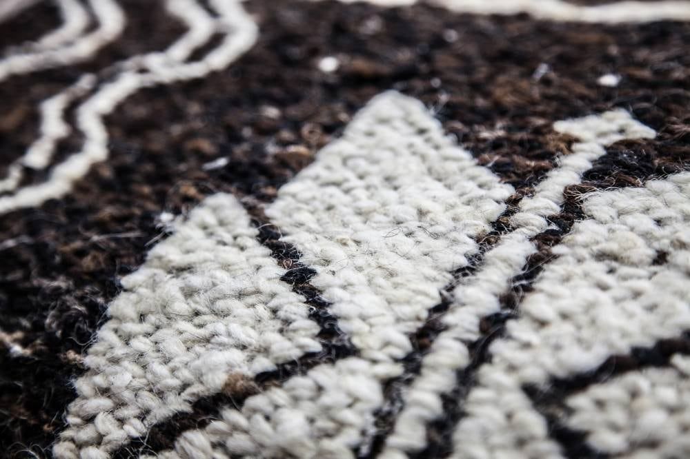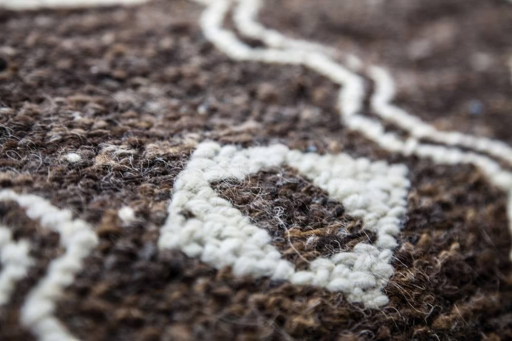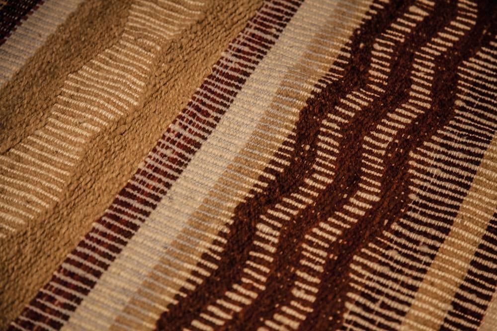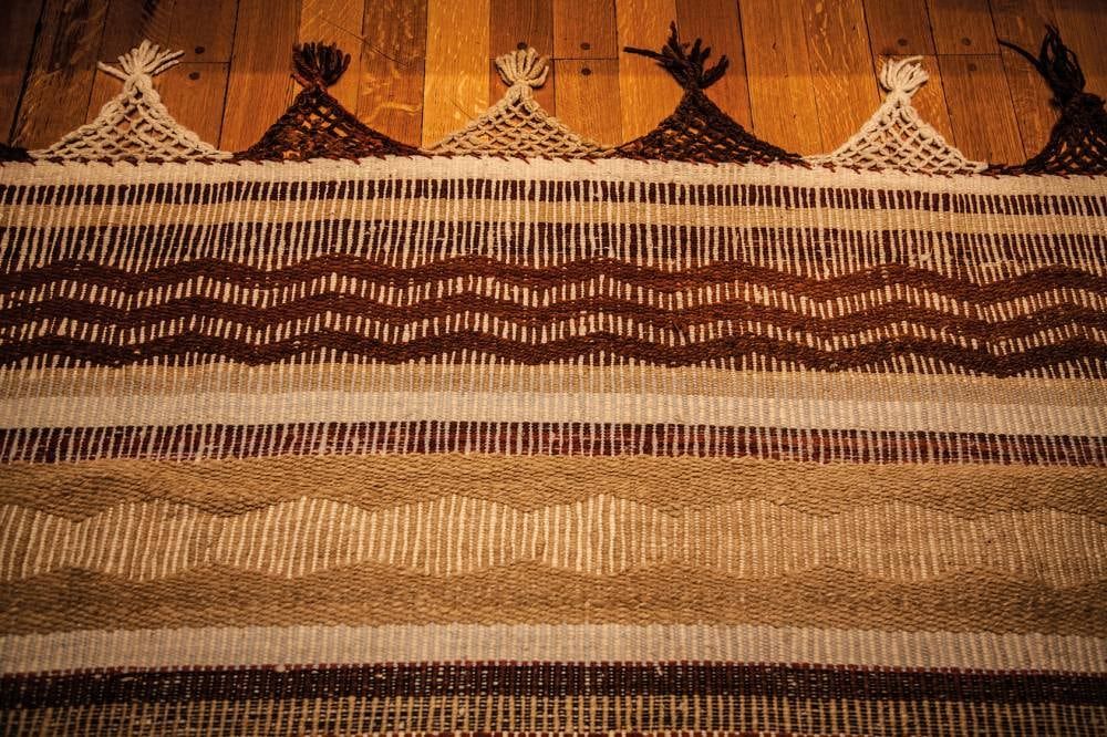 Esta alfombra está realizada con la técnica de peinecillo, que permite dejar a la vista una trama particular.
