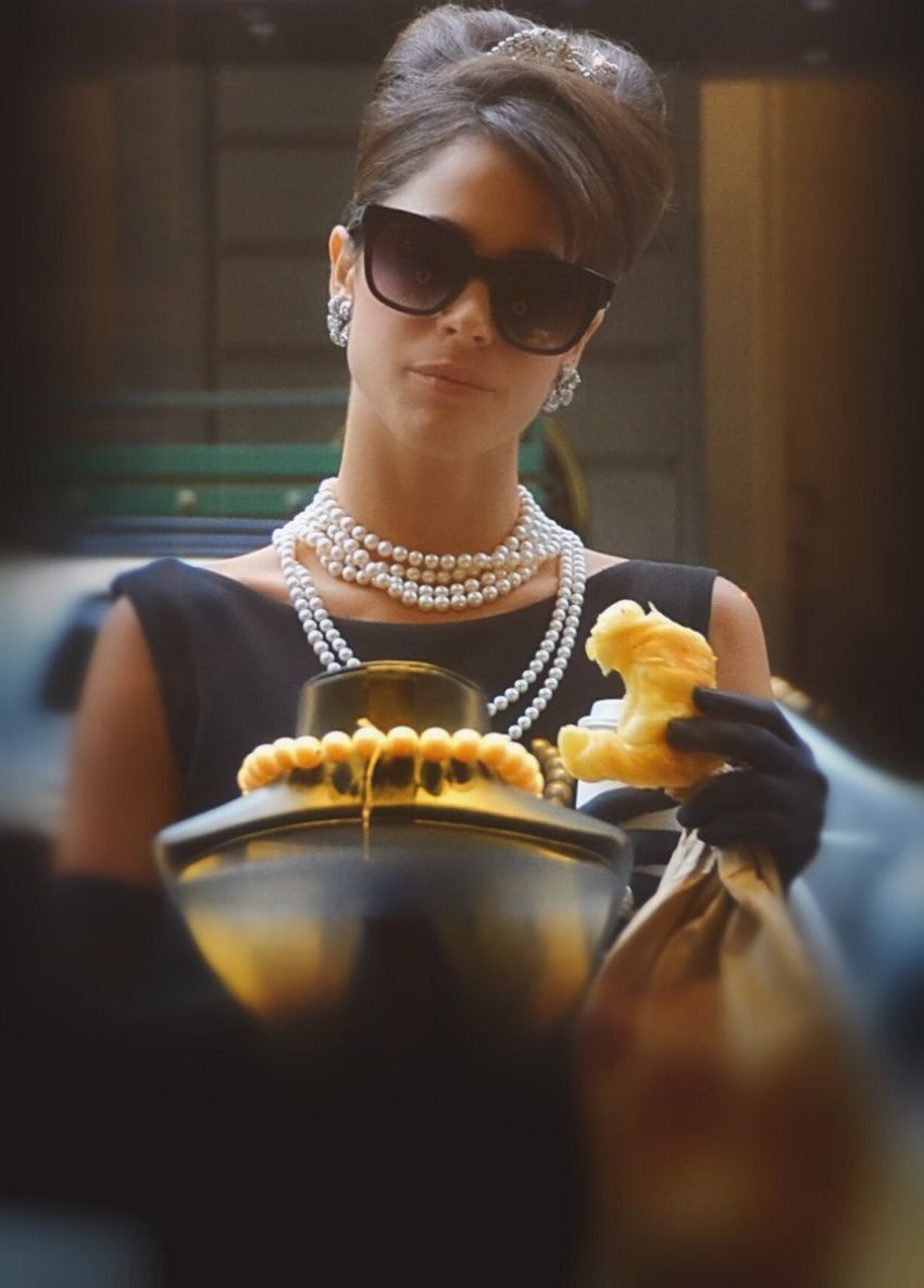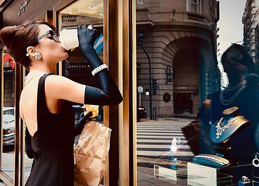 Obvio, no podía dejar de hacer referencia a Hepburn porque el calco es descarado -solo en las formas, claro-: emula una escena inolvidable de la genial película "Desayuno en Tiffany's", dirigida por Blake Edwards. Entonces Stoessel anunció que "siempre admiró" a esta diva de Hollywood.