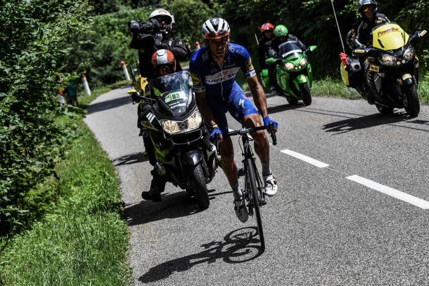 El belga del Quick-Step, que iba en la punta de la carrera, se salió de la carretera en una curva a izquierda y cayó por la ladera.