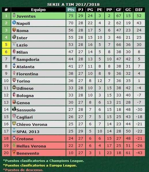 Por su parte, la Roma también viene marchando dentro de la zona que clasifica a la Champions, aunque muy lejos del Napoli, la Juve y del título del Calcio.