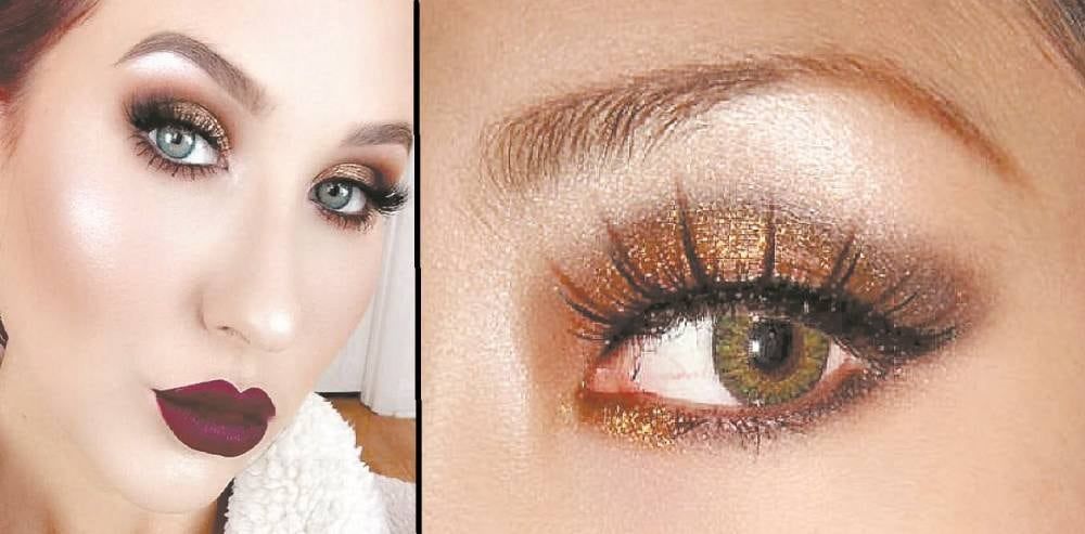 Para los ojos: se puede usar el maquillaje con sombras mate bien esfumado, pero el aire glam es dar un toque de shimmer, o un color metalizado en el párpado móvil. Otra sugerencia para un evento nocturno es resaltar la mirada con pestañas postizas.
