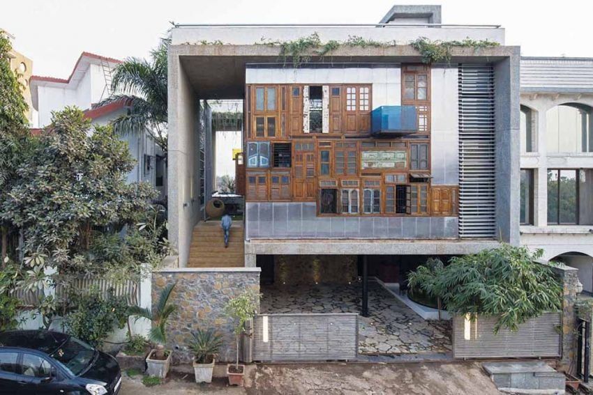 Por otro lado, la casa collage de S+PS Arquitectos, ubicada en Mumbai –India-, dialoga con los asentamientos en la ciudad. Adoptando ciertas características, como la adaptabilidad, la versatilidad, variedad de recursos y una cierta ingenuidad; el lenguaje visual surge de un objeto encontrado, utilizado a modo de parche y collage.