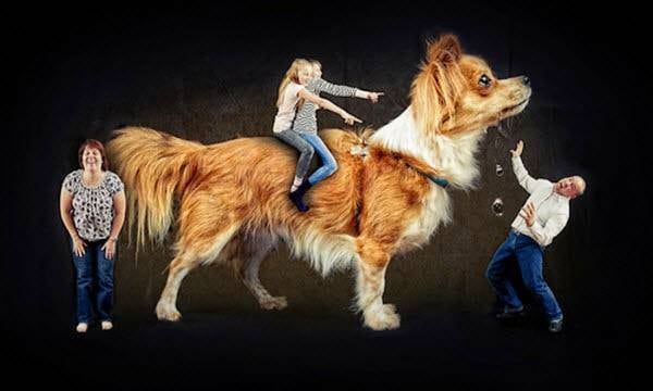 Perro de la familia. Esta es una forma divertida de poner a la mascota de la familia en el cuadro.
