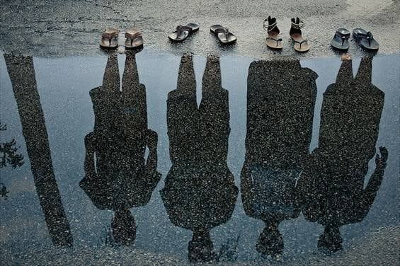 Un reflejo de un retrato de familia. Ojotas, un charco de agua, la cantidad correcta de luz y un toque de photoshop.