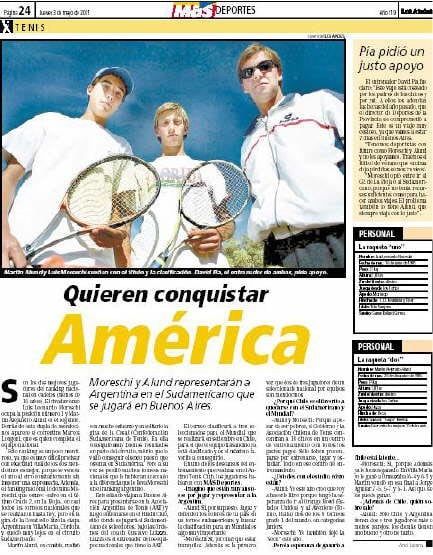 Una sociedad se gestó en ese 2001 entre Los Andes y este grupo de trabajo. El Diario tuvo enviados especiales no sólo al Sudamericano sino también al Mundial en Chile. Pero también acompañó a Alund y Moreschi a lo largo de su carrera. Martín llegó a meterse entre los mejores 100 del mundo y Luis fue imbatible en nuestras canchas.