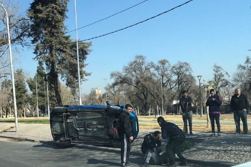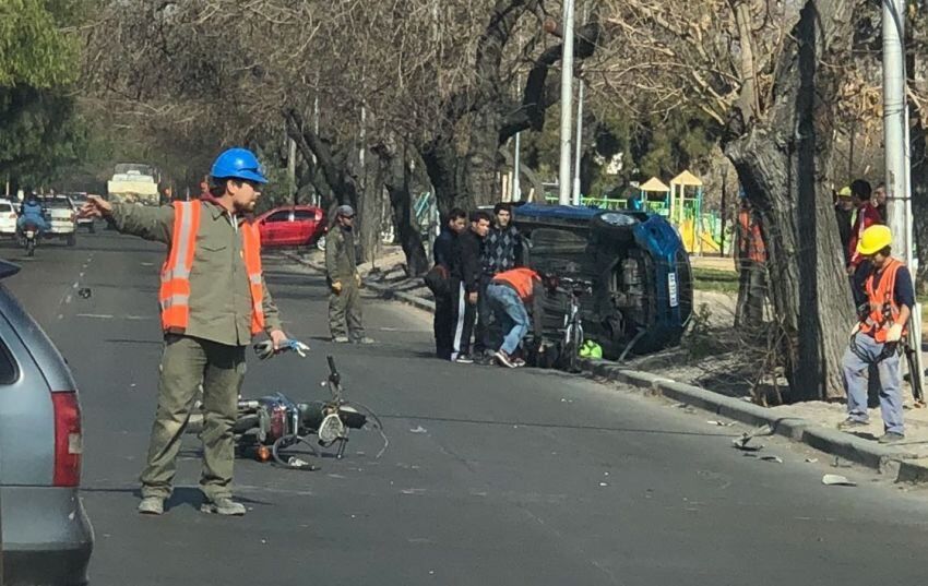 Un aparatoso vuelco ocurrido esta tarde dejó perplejos a los automovilistas que transitaban por la Costanera en Ciudad. Una moto y un automóvil protagonizaron una violenta colisión y el vehículo mayor terminó volcado.