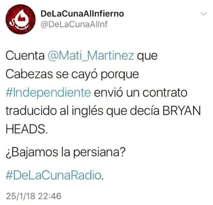 Según el programa radial De la Cuna al Infierno, la falla se dio cuando tradujeron al inglés el nombre del deportista en cuestión, por lo que su apellido fue modificado a Heads (cabezas en inglés). Entonces lo rebautizaron como "Bryan Heads".
