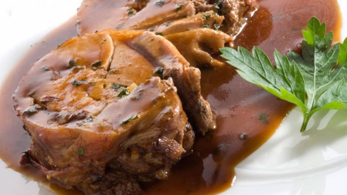 PLATO FUERTE: PIERNA DE CORDERO RELLENA CON MANZANAS Y PASAS