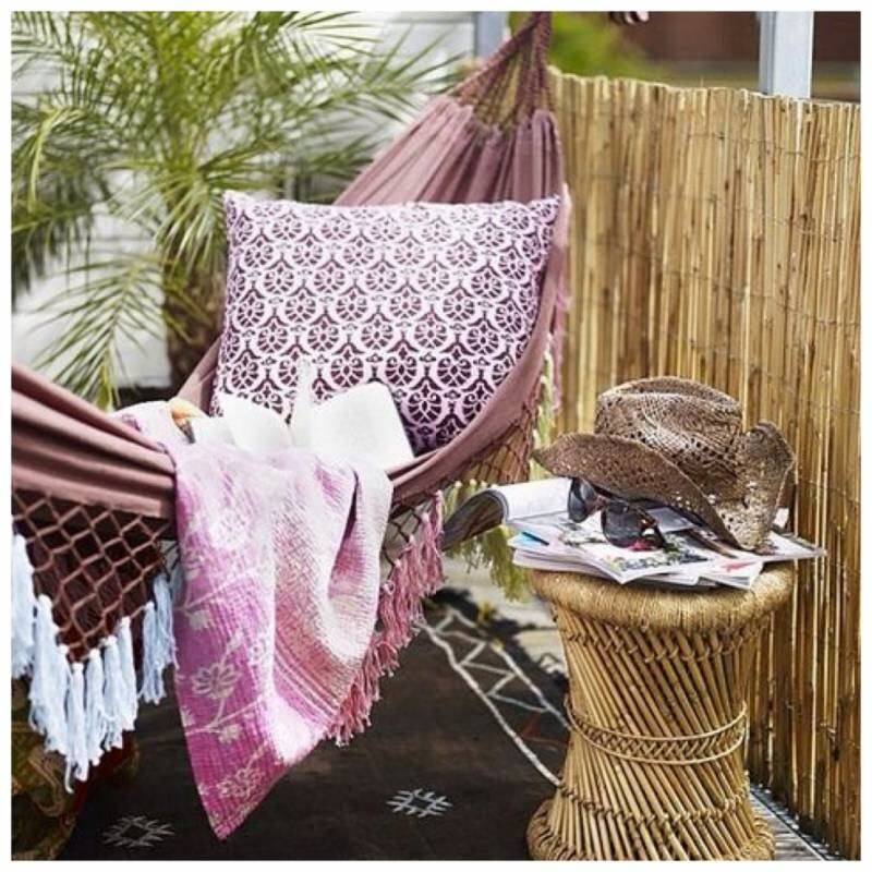 Diferenciando el interior de la vivienda de la zona exterior te será más fácil desconectar del ruido de la ciudad. Dentro de tu casa hay sillas, butacas y sofás, pero por lo general no hay hamacas. Muebles como estos diferenciarán tu balcón del resto de los espacios interiores. Hoy en día existen infinidad de modelos y de materiales, si elegís una fabricada a partir de fibras naturales y añadís algunas palmeras, conseguirás dar un acertado toque tropical a tu balcón.