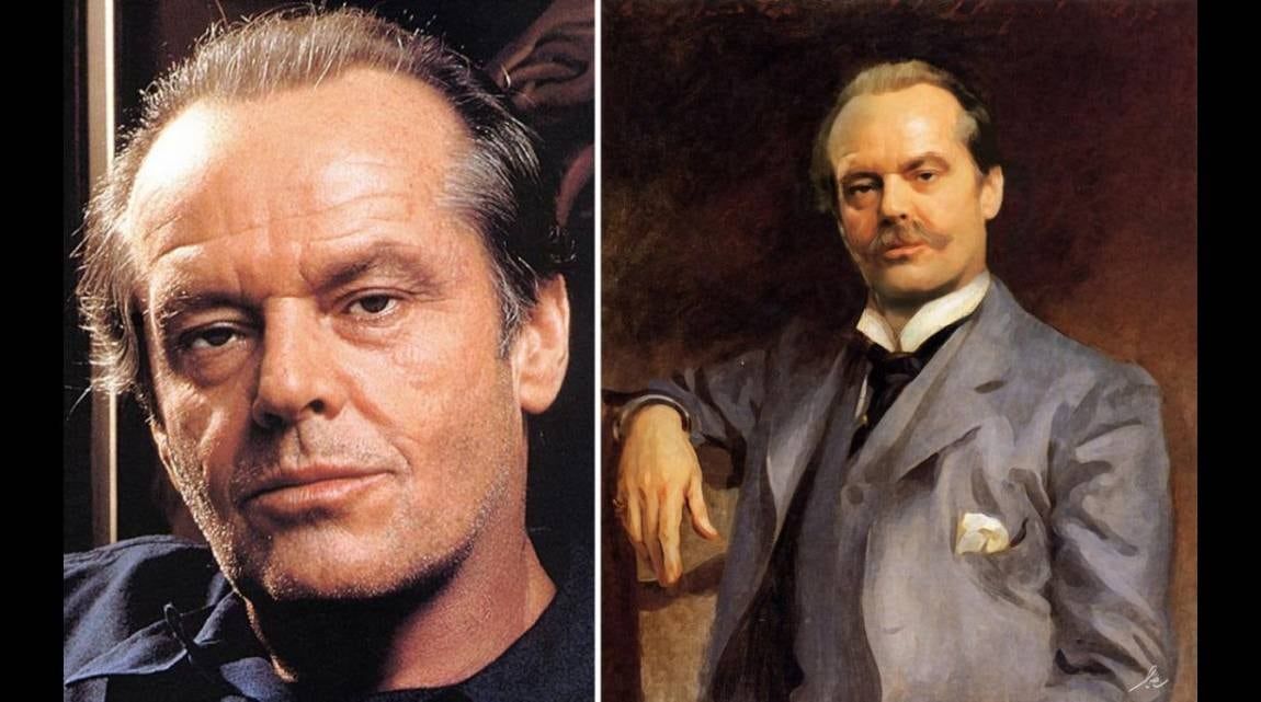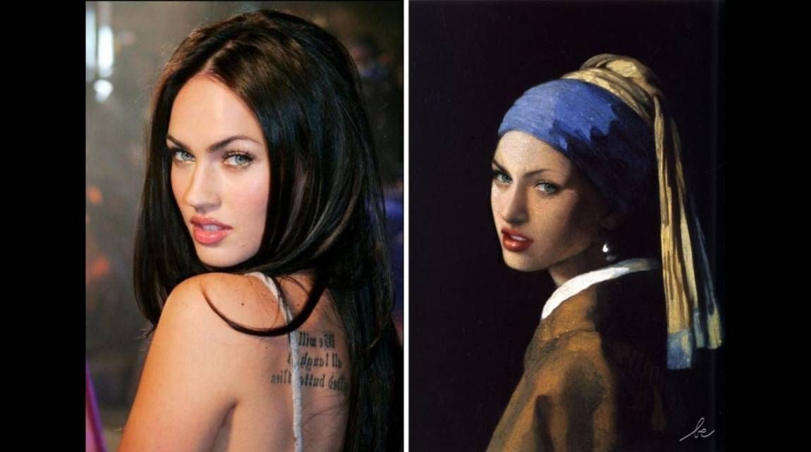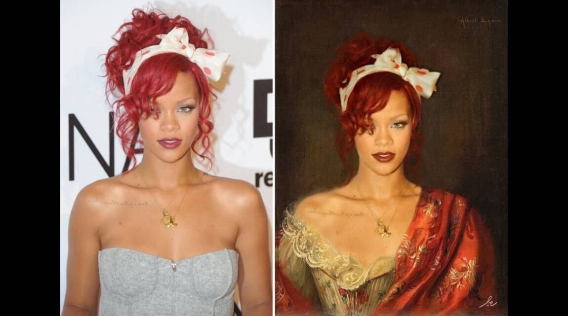 El blog muestra a Dicaprio pintado al estilo de Van Gogh, a Madonna de Sogni de Vittorio Corcos, o a Rihanna en Woman in a red embroidered shawl de Albert Lynch.