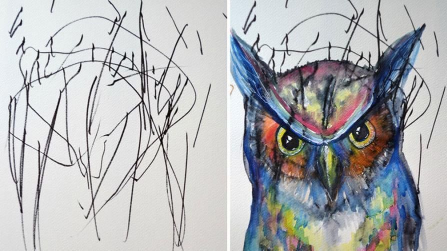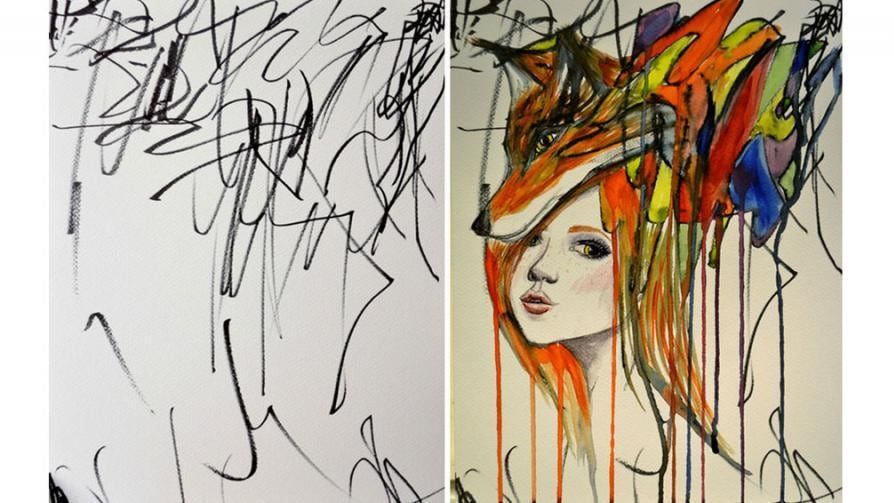 La artista canadiense saca los dibujos de su pequeña de la puerta de la heladera, pinta entre las líneas dibujadas y vende las obras por Internet.