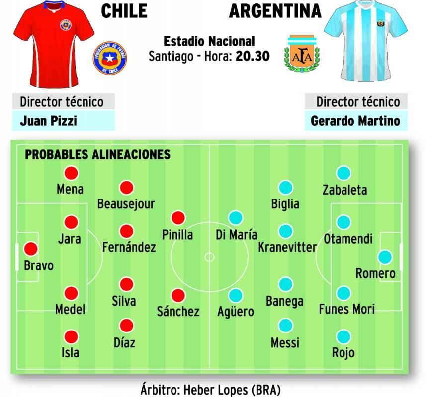 Por su parte, Chile que llega con el antecedente fresco de su primer título a nivel internacional en aquella final de julio del año pasado, se producirá el debut de Juan Antonio Pizzi, como DT.