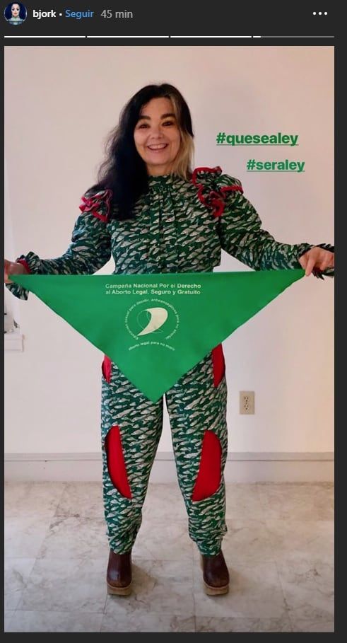Es que la cantante finlandesa Björk publicó en sus historias de Instagram una foto con el pañuelo verde y con los hashtag #quesealey y #seraley.