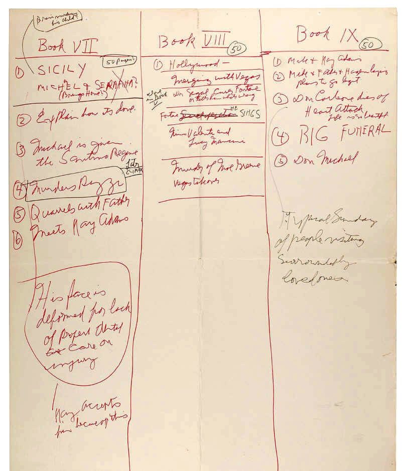 La colección abarca toda la carrera de Puzo, con manuscritos de sus primeros libros y sus últimos guiones, incluso su vieja máquina de escribir. Pero indudablemente el plato fuerte son las miles de páginas de anotaciones para “El padrino”. Estas arrojan luz sobre el proceso creativo, incluyendo las vueltas entre Puzo y Francis Ford Coppola mientras colaboraban en el guion.
