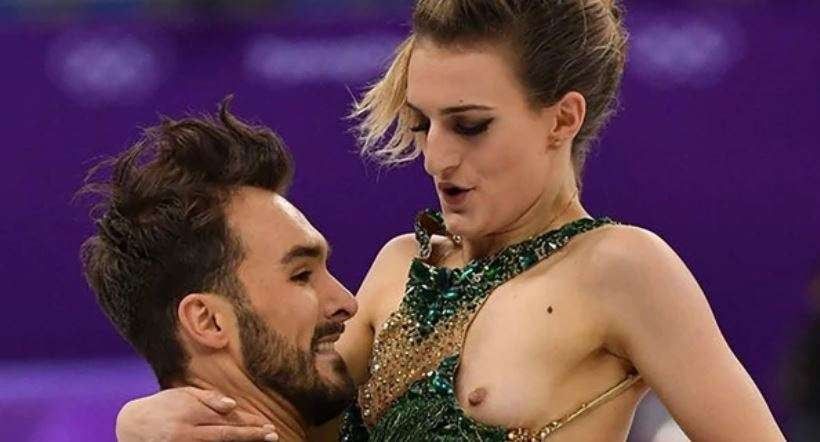 Pero en la parte final de la rutina, cuando Papadakis se inclinó hacia atrás, sostenida por los brazos de Cizeron, el vestido se le desplazó hacia arriba y el seno quedó expuesto. Las imágenes fueron difundidas por la televisión, y se desató el revuelo en las redes sociales.
