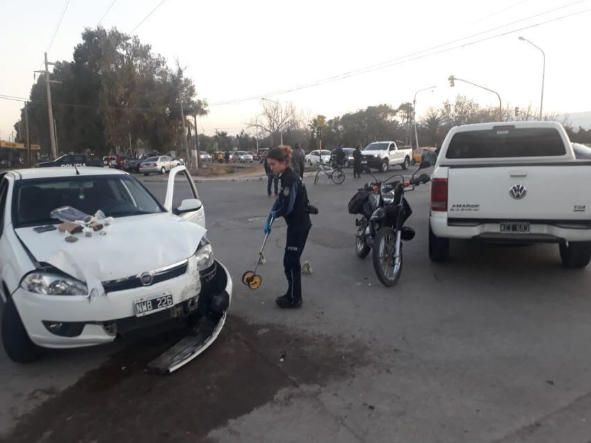Al llegar a la intersección de Acceso Norte y Pascual Segura se produjo la colisión entre el vehículo en cuestión y una camioneta VW Amarok, aunque la motocicleta en la que viajaban otros efectivos policiales también participó del impacto.