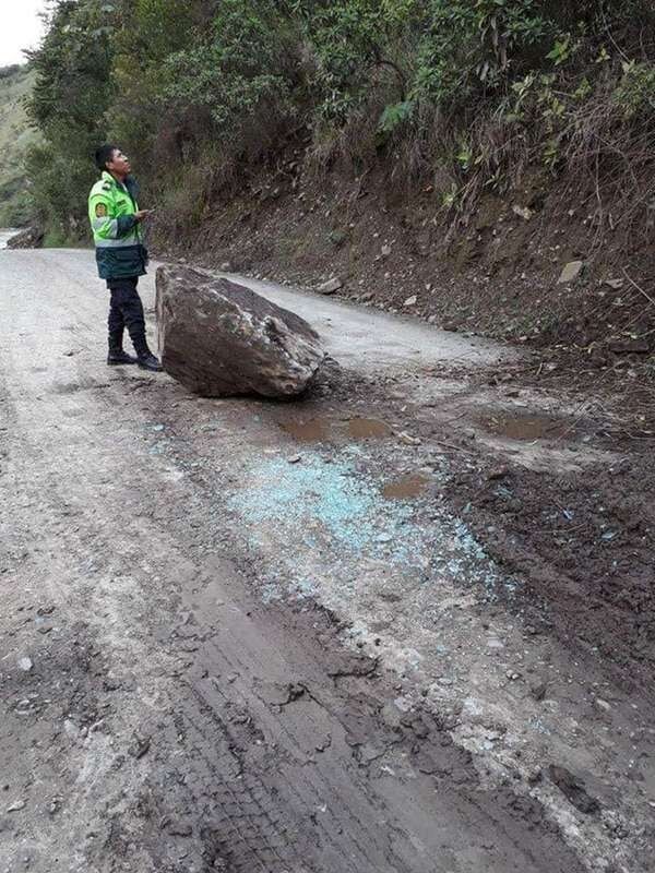 El minibús de placa B9I-500, de uso turístico y conducido por Marco Antonio Pacheco Huillc, de 37 años, viajaba por el sector de Cocalmayo, distrito de Santa Teresa, cuando fue impactado por "una inmensa piedra", reportaron fuentes de la policía local, que señalaron que "la roca puede haber caído por las fuertes lluvias que hubo en la región en los últimos días".