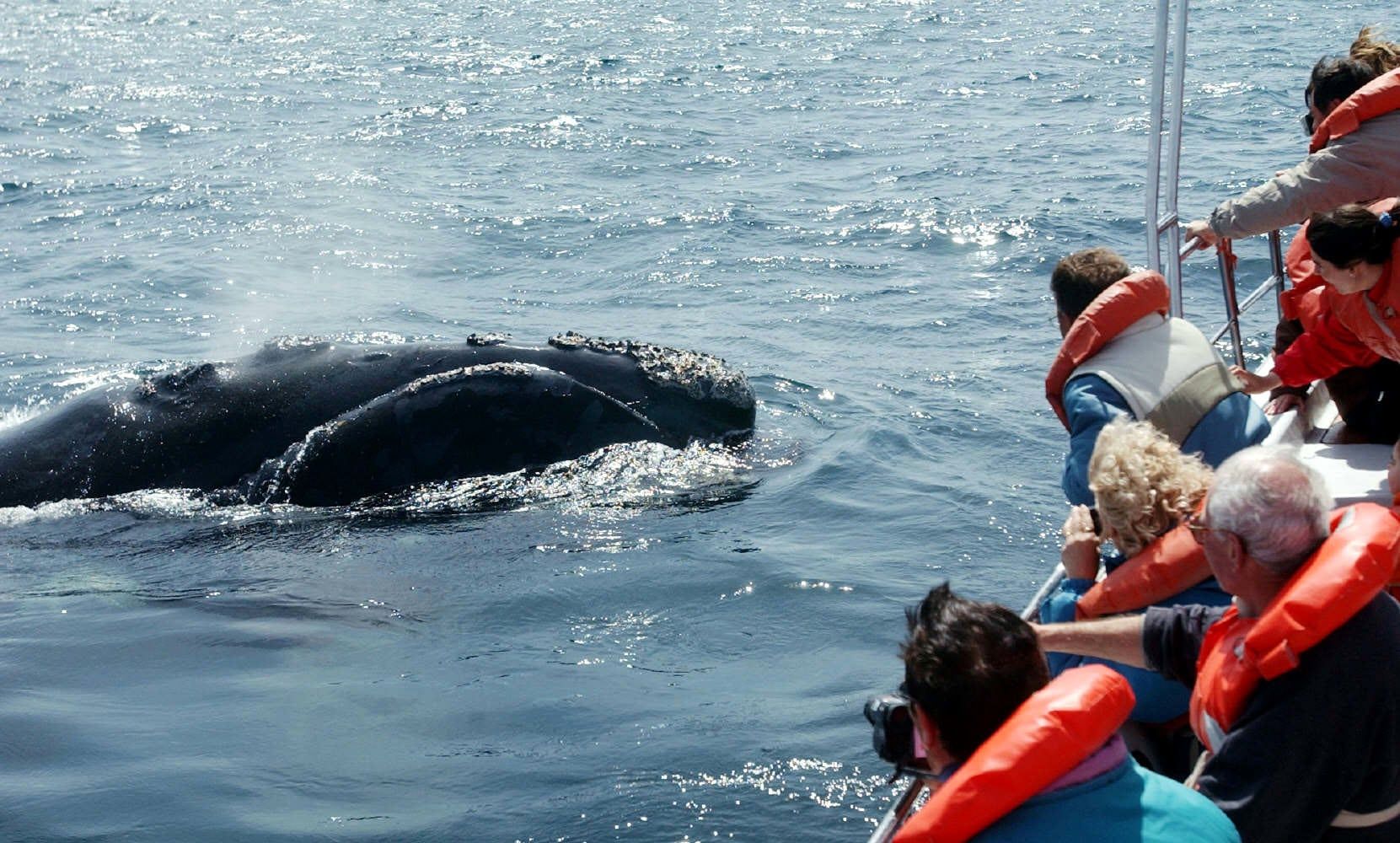 Por altoparlante el capitán indica si se encuentran ejemplares alrededor, también que se hable en voz baja pues las ballenas escuchan todo y son muy sensibles. Luego señala el lado verde (izquierda) o el rojo (derecha) para ver a los mamíferos en su hábitat natural. Ahí se toma noción del tamaño -llegan a medir llega hasta 17 metros y pesar 40 toneladas-. También se pueden observar desde la superficie del Yellow, pues hay espacio para darse el gusto de las 2 experiencias en un mismo viaje.