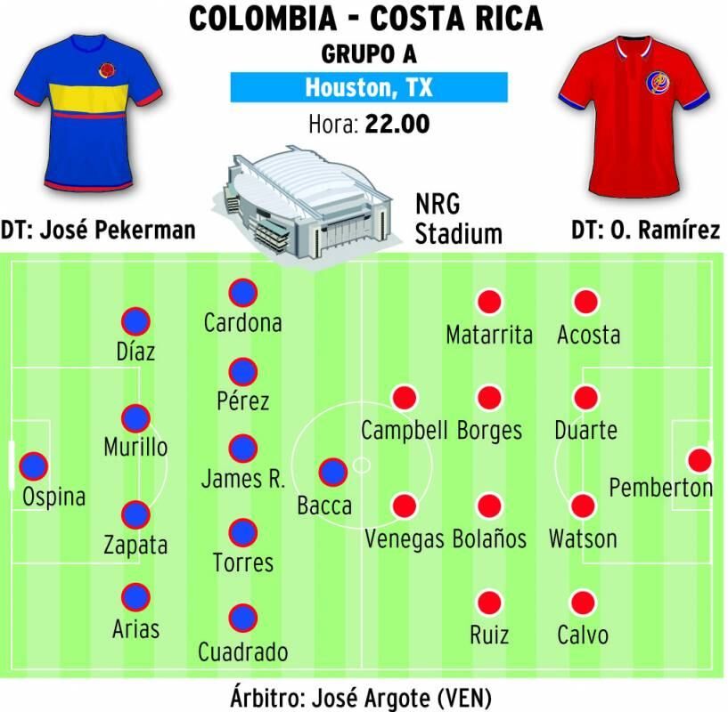 El plantel dirigido por José Pekerman enfrenta hoy a Costa Rica con la tarea de ganar para cerrar la primera fase con récord perfecto y asegurar el primer puesto del Grupo A, que todavía puede disputarle Estados Unidos.