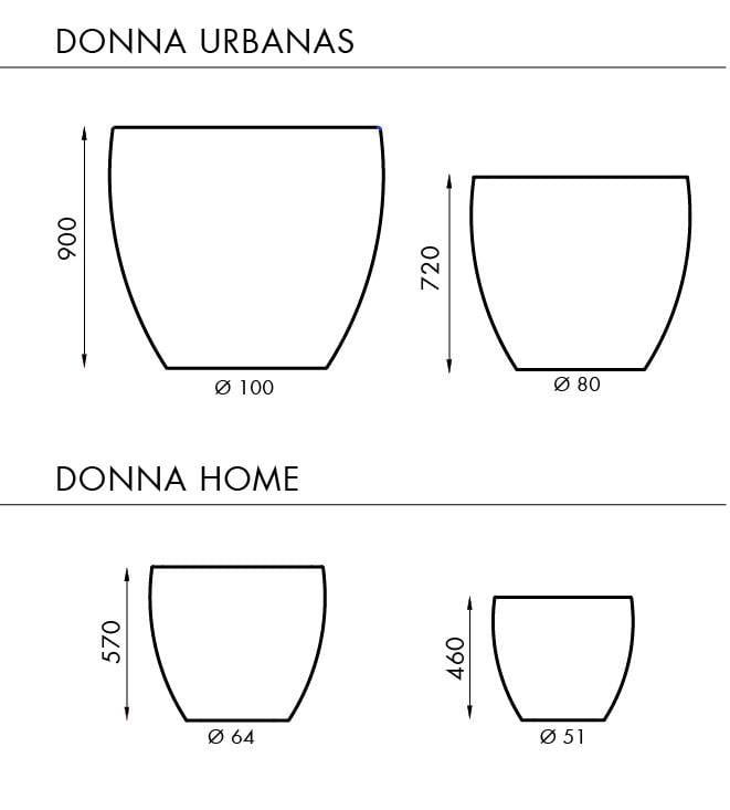 Todas las macetas Donna, en su interior son protegidas mediante un proceso de impermeabilización para mayor protección y mejor vida útil del producto. A su vez, incluyen en su base orificios de percolación del agua.
