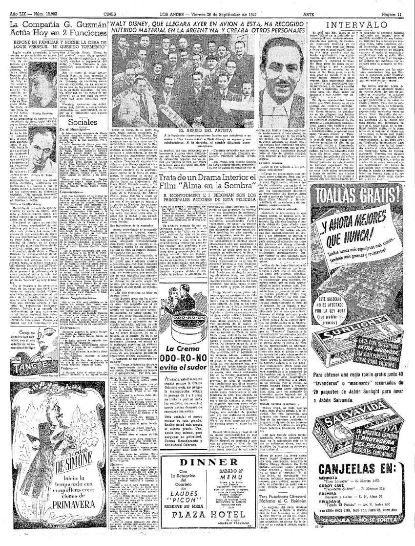 Una de las más memorables crónicas y entrevistas que fueron publicadas por Los Andes es la de Walt Disney en setiembre de 1941.