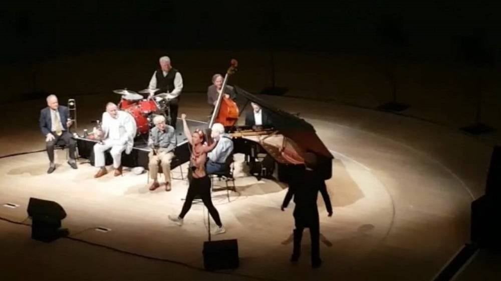 El reconocido realizador de 81 años estaba tocando el clarinete en el escenario con su New Orleans Jazz Band en Hamburgo, cuando dos mujeres, con flores en la cabeza y frases escritas en sus torsos interrumpieron la música y comenzaron a gritar. Sin embargo, tras pocos segundos de gritos escandalosos, las dos mujeres fueron inmediatamente sacadas del escenario por personal de seguridad del concierto.