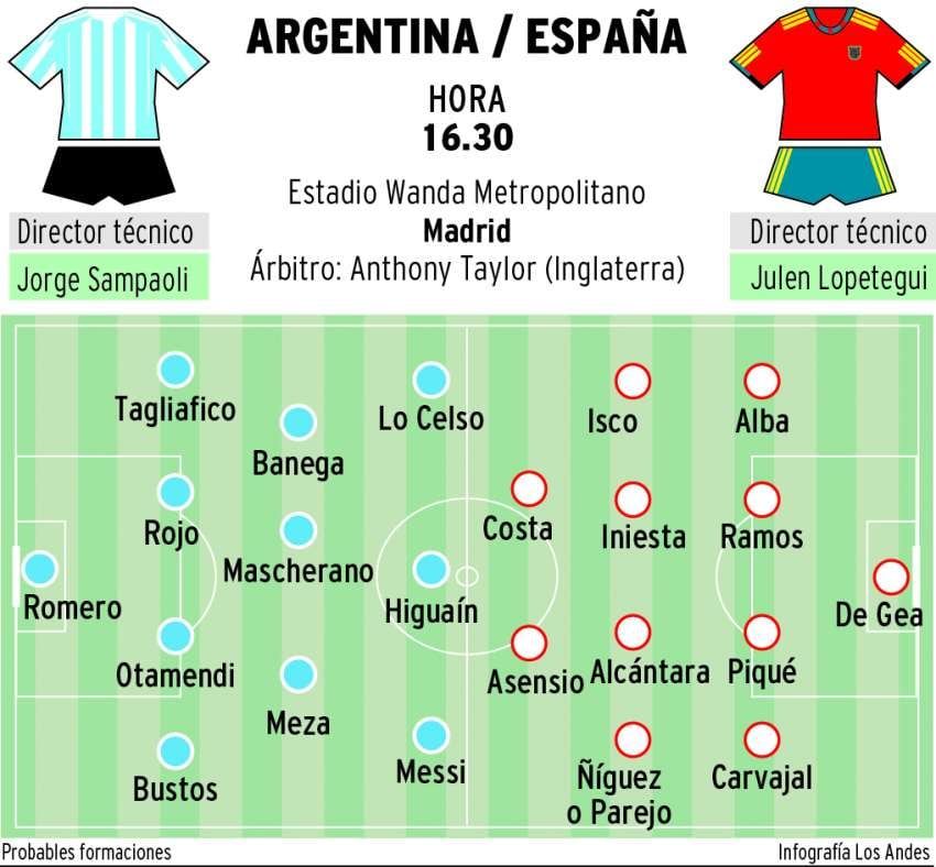 El Seleccionado argentino, con el regreso casi seguro del capitán Lionel Messi, rendirá esta tarde ante España, uno de los candidatos al título en el Mundial de Rusia 2018, el último gran examen previo al inicio de la competencia.